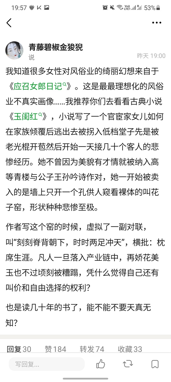 有一部《她身之欲》便是对21c00s性工作者所做的调查,但我今年再读,发现经济环境(小地方→大城市)、文化诱因(电视报纸等大众传媒塑造的相对统一的价值追求)还是外部环境(书中所讨论的广州red灯区如今已经没了十多年)都和今日区别很大。