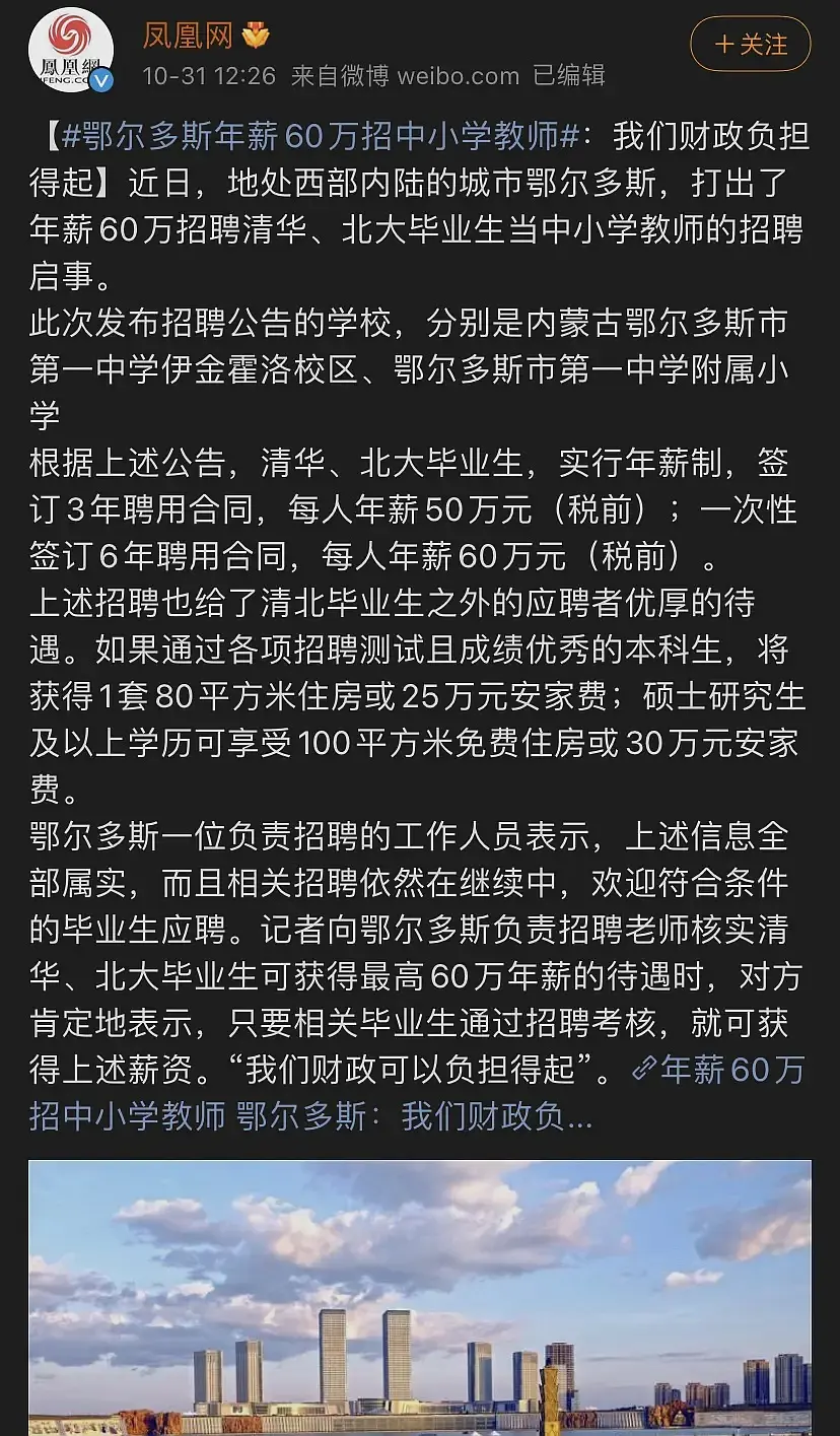 这种限定清北的价格全国都差不多(其他地方稍微低一点点,大概50w),鄂尔多斯这种地方想竞争过什么江苏广州,必然得开的更高。