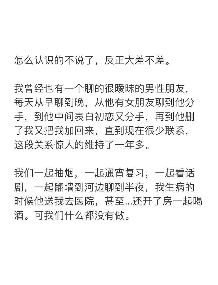 补充一下,当时我也算是脚踏两只船了,我放假回家的时候就跟一个曾经喜欢过的中学同学kiss了,我们俩都表示没什么感觉🚬。这个朋友知道我很喜欢那个暧昧对象的,有一次我们正要kiss,暧昧对象给我发了条消息,我要回消息就一把把他推开了。