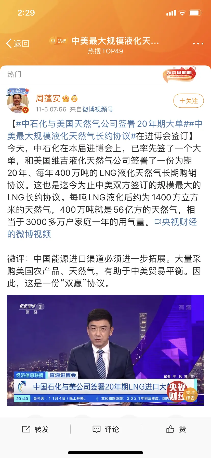 目前天然气是替代煤的最好选项 但cn太少了