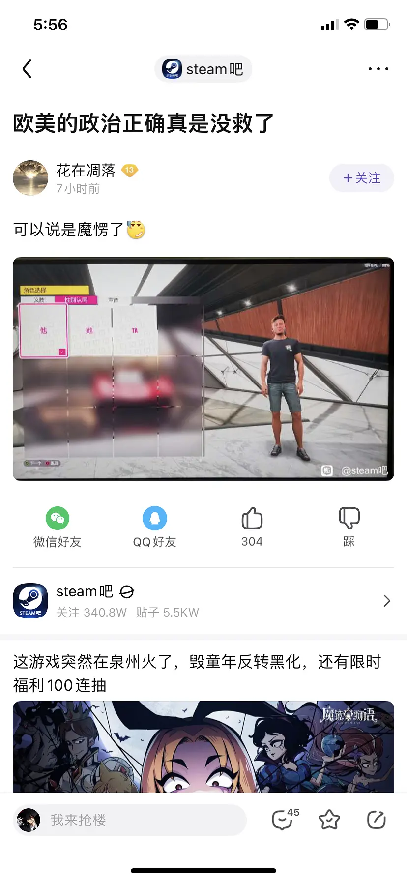 平时二次元天天扶她、女装大佬挂嘴上,这么这时候就不接受了