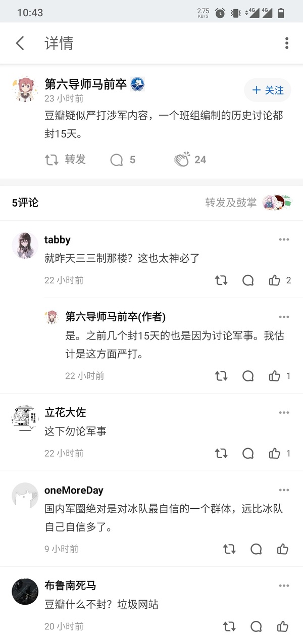 我还想把餐会转为专门的军事讨论标签,但军事内容始终是豆瓣红线,即使是在私密组也一样