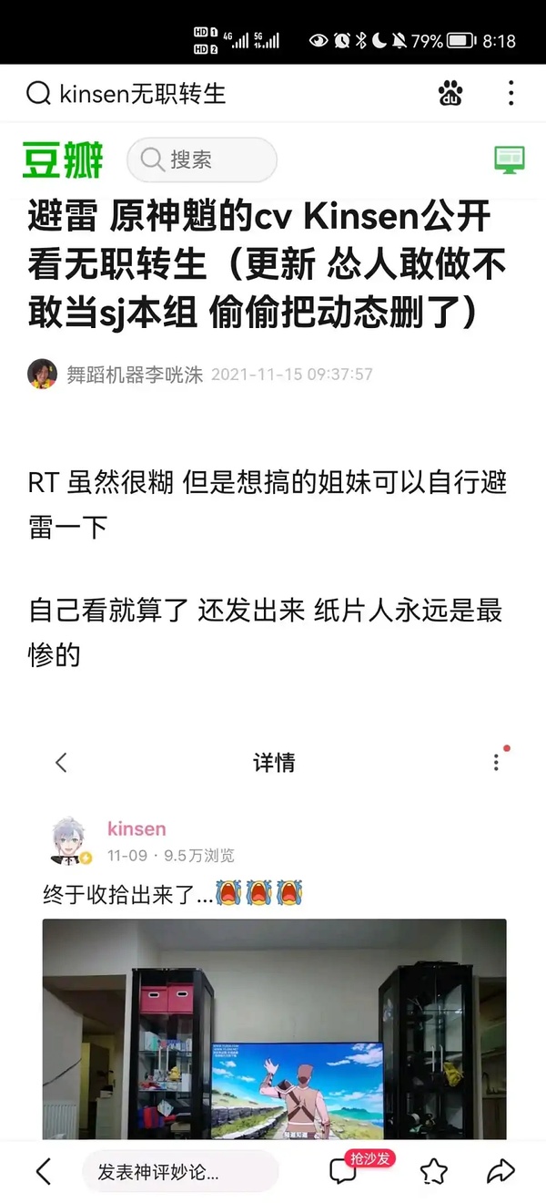 最近因为原神的某个声优发了一张无职转生的截图引起了不小的争议,原神专组也在争吵这件事……这才引得我看看这个小组是不是还有活人在吵……
