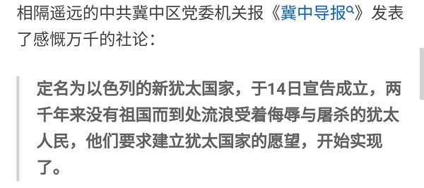 TG支持以色列建国的网络信息我只找到一个自称是《冀中导报》社论的来源,而且没有原图。