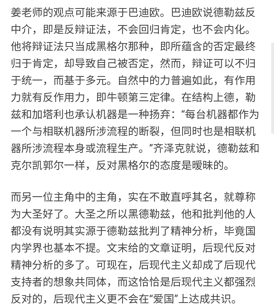 千手关叔锐评网哲世界大战么么哒的嗑药炮2021/11/19 12:15:12 简评十年不遇的网络哲学大战 zhihu.comLoading...Loading...(聊天截图应该是“树是种子的潜能”)Loading...其实247早早就察觉到了这点,所以就揪着未明子的精神分析谱系(弗洛伊德——拉康——齐泽克)背景一顿乱锤。德勒兹对精神分析的批判详见「精神分裂分析」理论。Loading...Loading...————————Loading...Loading...备注:热销中 Loading Spinner