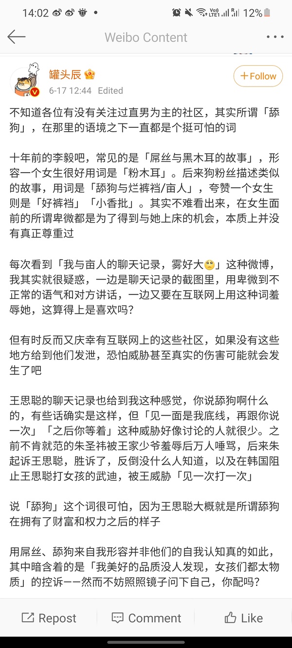 Link Icon 互联网厌女言论一大把,现在有点反弹了就成亩人了?
