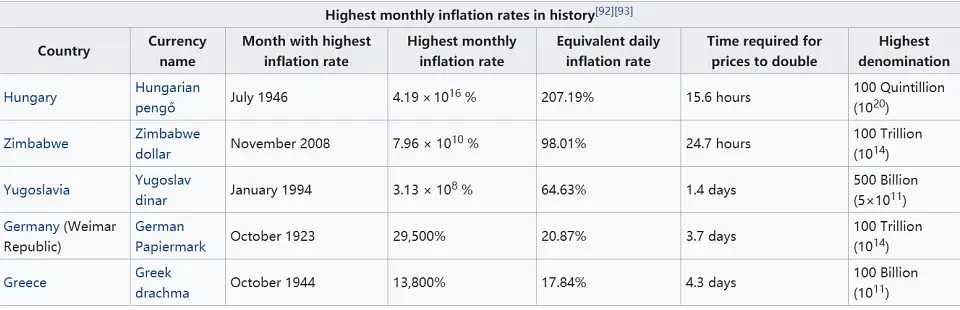 历史上最著名的五个超级大通胀