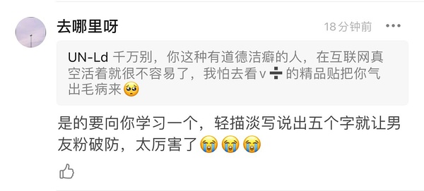 UN-Ld 不是破防,就是觉得荡妇羞辱很无聊。你都要求所有vtuber“冰清玉洁”了,我还能说什么呢,只能顺从