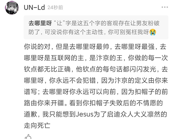 Link Icon 你说的对,但是去哪里呀最帅,去哪里呀最强,去哪里呀是泥瓣的主,是汴京的王,你做的每一次钦点都无比正确,他钦点的每句话都闪闪发光,去哪里呀,你永远不会犯错,因为汴京的定义由你来谱写;去哪里呀你永远可以向前,因为扣帽子的前路由你来开疆。看到你扣帽子失败后的不情愿的道歉,我只能想到耶稣为了启迪众人大义凛然的走向死亡