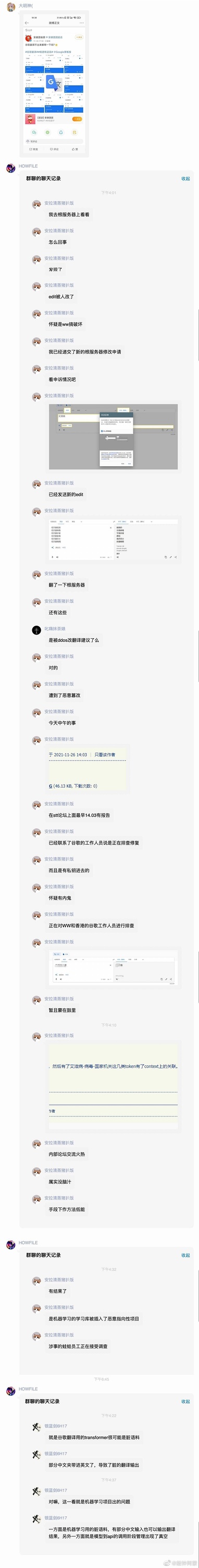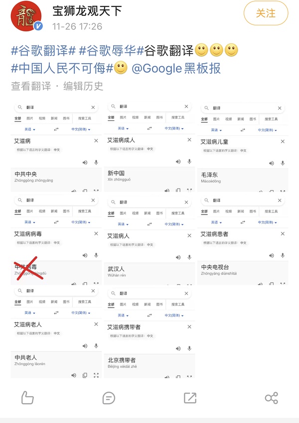 不大清楚运行机制,可能是有内鬼员工/黑客攻击,也可能是通过大量提交翻译纠正的方式污染数据库攻击ML模型。 更有趣的是:为什么有人会把艾滋病这个词英翻中?还能把所有乳了的词都列了出来?如果真如楼上所说,中午改了下午就爆出来?自导自演可能性宏存