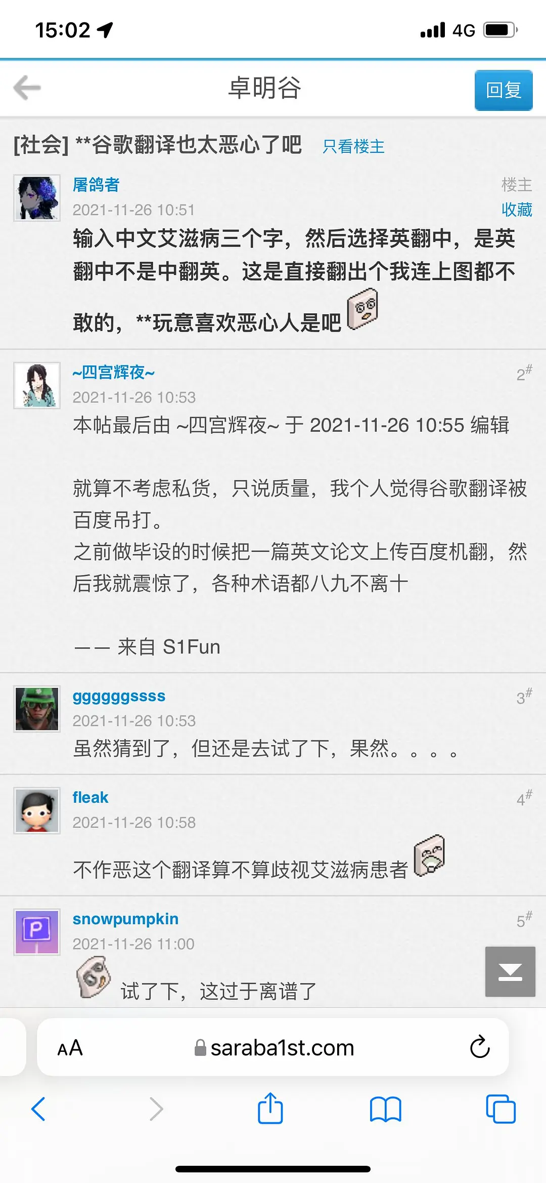 yysy,谷歌翻译真不如百度翻译,连我这种英文丈育都能看出明显问题,而百度翻译我一直拿来和TG外国人聊天用
