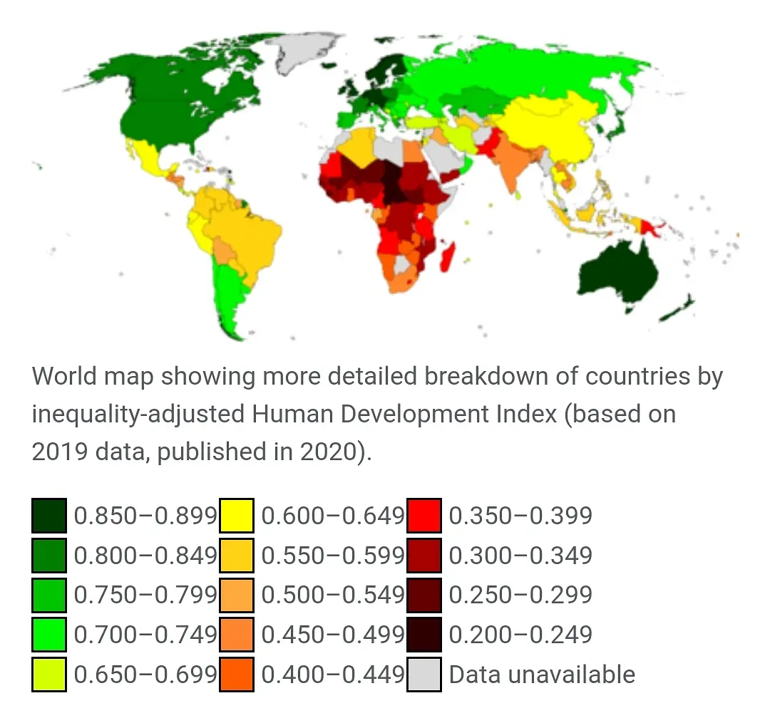 比如🀄,2019年的IHDI是0.639,HDI是0.761,贫富差距造成人类发展指数下降16%