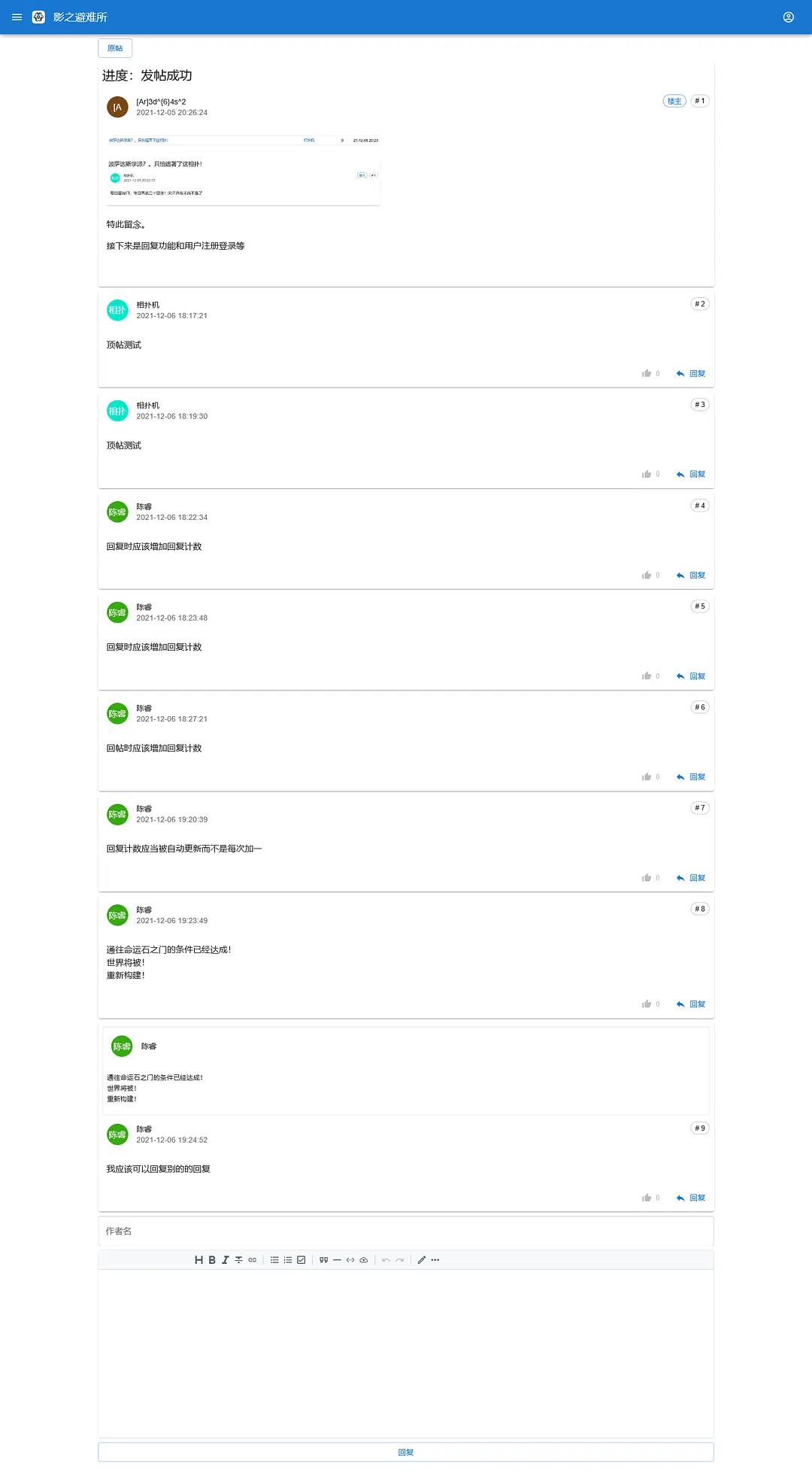 进度:避难所已可发帖、回复与插入图片