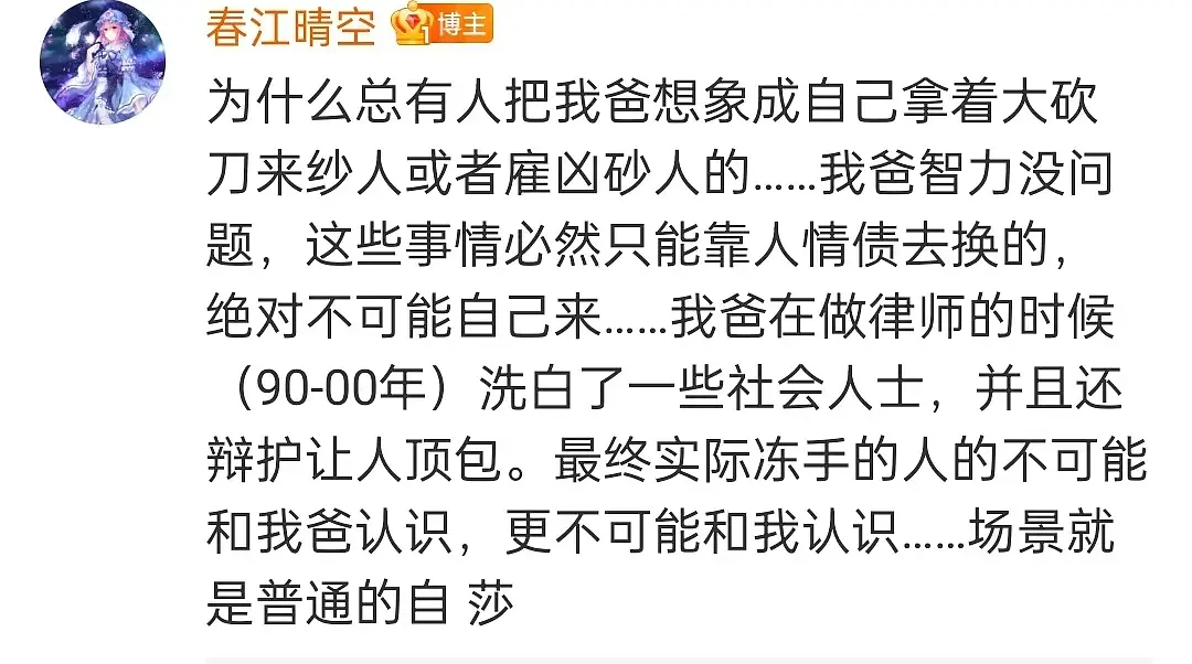 关键信息在第一张图:她爸是如何从律师成为副厅级主管广电的呢?这“社会人士”也未可知。