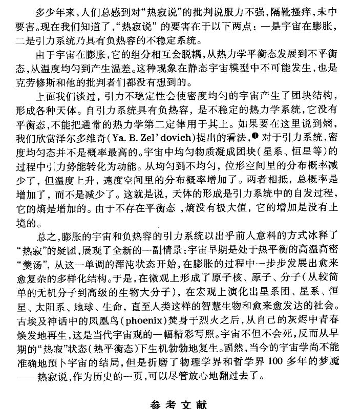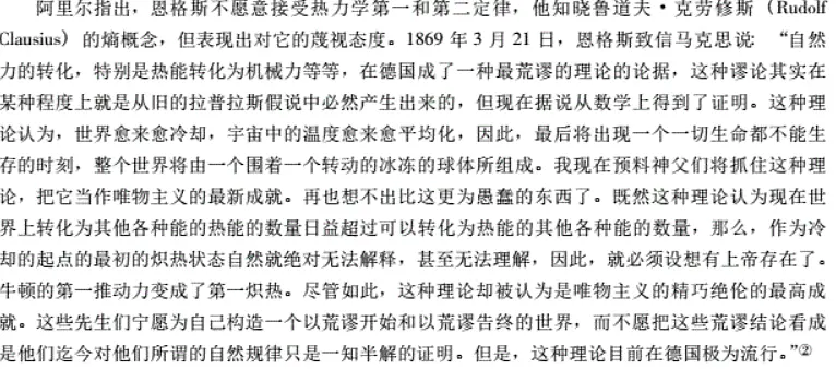 既然我们已经谈到了恩的《自然辩证法》,就谈谈“热寂”吧,这是恩被批判已久的“暴论”,然而热寂论在现代确实已经被推翻了。我懒,这里直接贴《定性与半定量物理学》的两页。