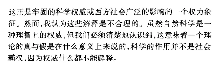 温伯格断定,库恩意义的科学革命不会发生第二次(现代物理学范式将永存),而物理学(或者说,认识论)也会在数百年内到达终点,通过某种大统一理论,就如他那鲜明的还原论观点: “人们持久的希望之一就是,找到几条简单而普遍的规律,来解释拥有其全部外在复杂性和多样性的大自然为什么会如此。此时此刻,我们所能得出的最接近大自然的统一观点是按照基本粒子及其相互作用来描述的” 这话简直像极了一些工业派对人。啊,他还说过,“ 越了解宇宙,更多的毫无意义 ”(但是科学就有意义,奇了怪了)。为什么温伯格这么讨厌“后现代科哲”?因为他自己是写教科书的,而库恩就说,教科书体系就是维护科学共同体利益的,谁都清楚它不是什么绝对真理。好,我们再来看《索卡尔》这本书里温伯格怎么说的。