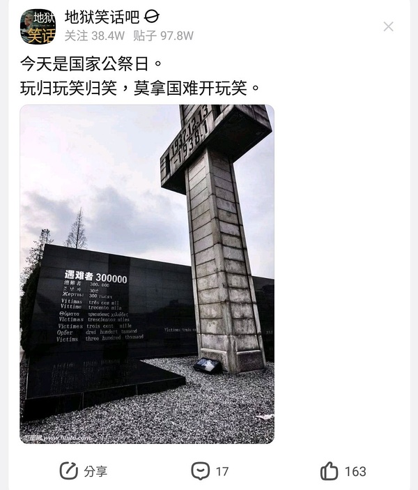 寂灭血觋真有人在地狱笑话吧试图放送nanking笑话,兔友一转气急败坏