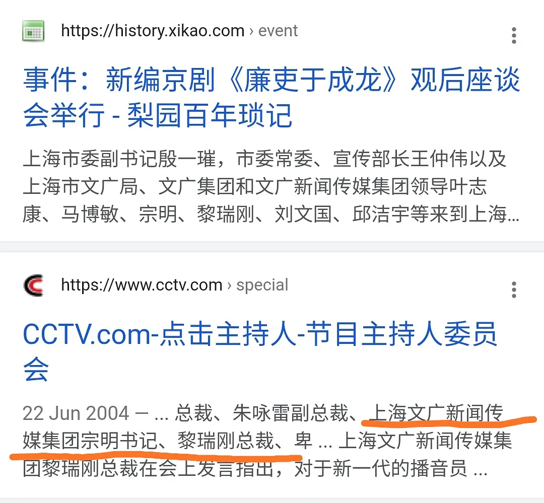 宗明和黎RG在00年代初是上海文广集团的一把手、二把手。宗明后面一直主管上海的文化产业。黎一直是文广集团的总裁(15年下去)和董事长。赵富强和文广集团有说不清道不明的关系,竟然能拿到《平安上海》这种节目的承包权。