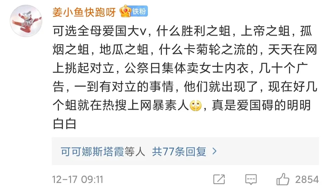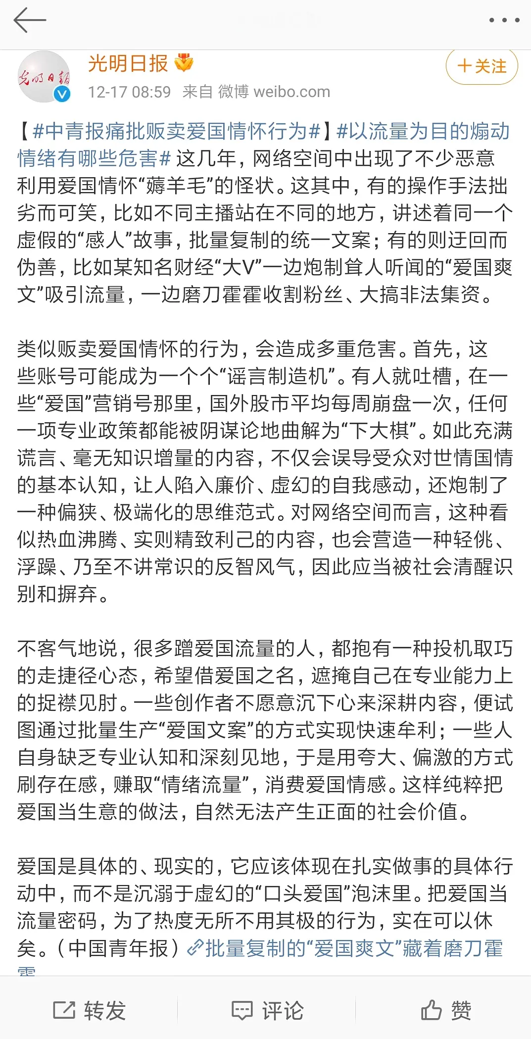 对爱国大V重拳出击clearlove2021/12/17 02:45:49 辶人总算意识到自己养的蛊了,这帮挣爱国流量发爱国财的看着就恶心,早该清清了!Loading...另外评论区里第一条很难让人绷得住Loading... Loading Spinner