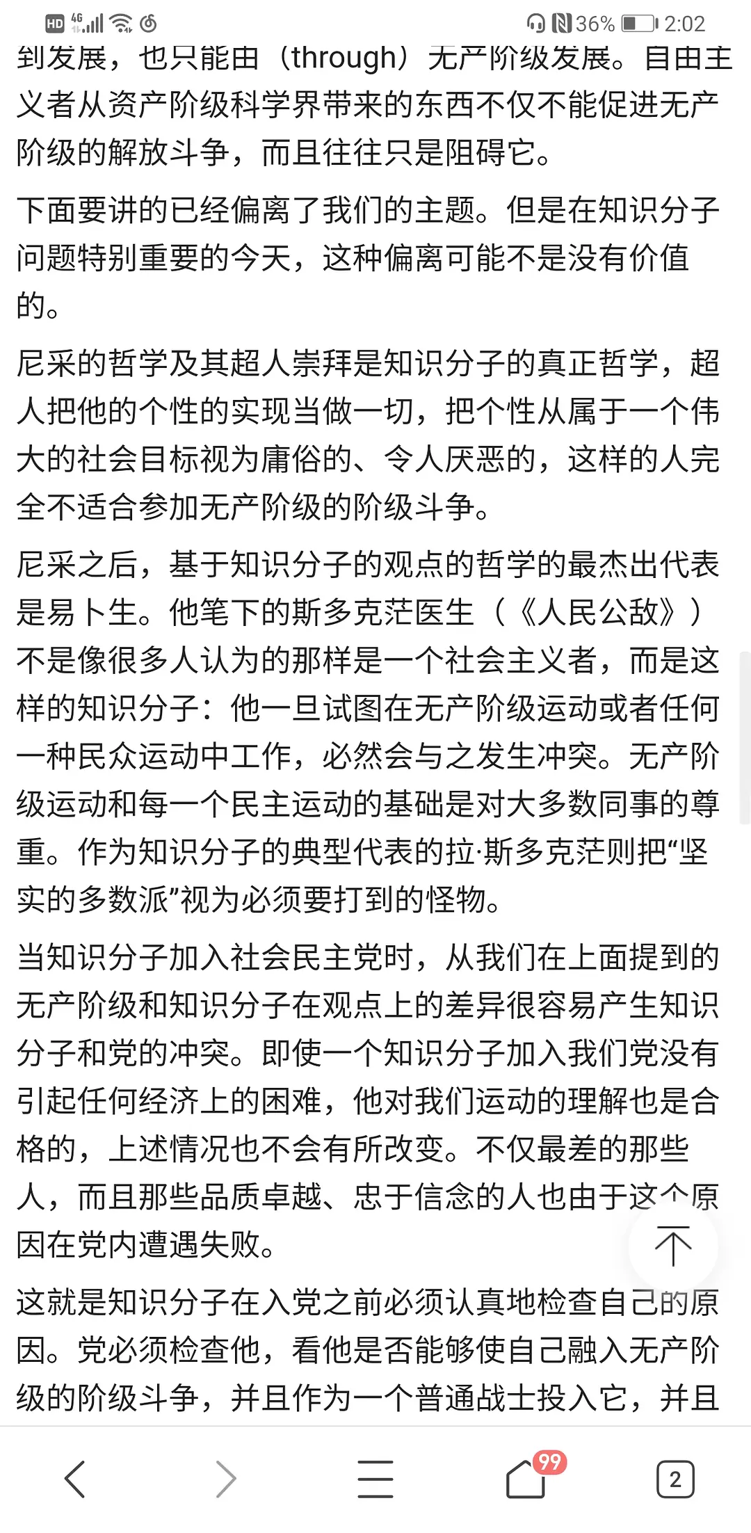这里考茨基和猫倒是在知识分子和人民群众的关系上没多大差别…关键分歧应该是后面对组织本身的崇拜和统一战线服从“大局”的必要性,这是不是也表明了某种知识分子和革命家的必然对立——前者出于某种对启蒙的狂热追求群众或者说无产阶级的知识分子化,而后者要求知识分子本身实现自身的无产阶级化,服务于无产阶级自身的文化霸权,所以是否才会有施特劳斯那种哲人与城邦的必然对立的论断?
