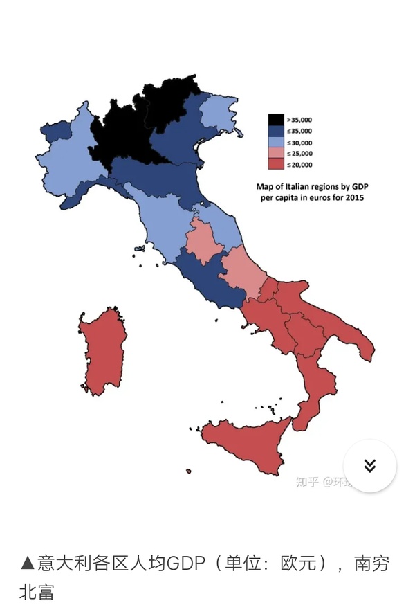 匈牙利人均GDP有1.5万美元。南意大利现在这小于2万美元的人均GDP在很大程度上也是靠北意大利的转移支付续着。